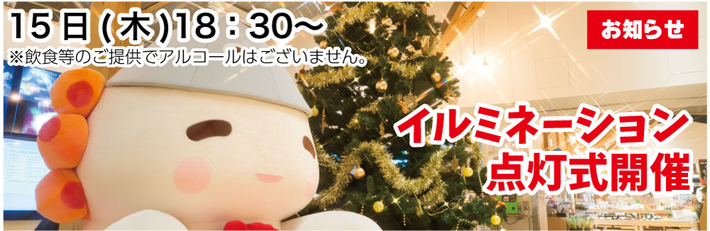 【お詫びと訂正】12月2日、新聞に折り込みましたチラシの中で、イルミネーション点灯式の曜日に誤りがございました。正しくは「15...
