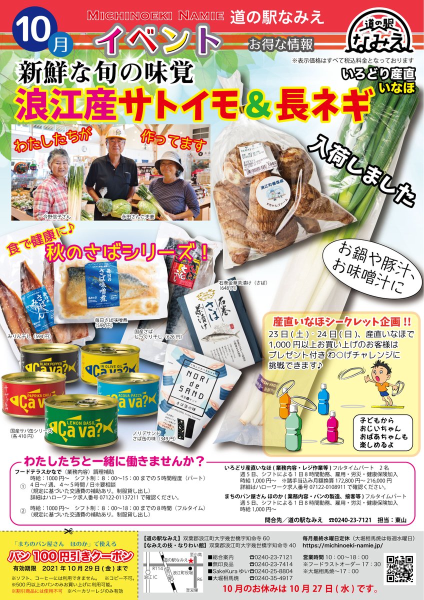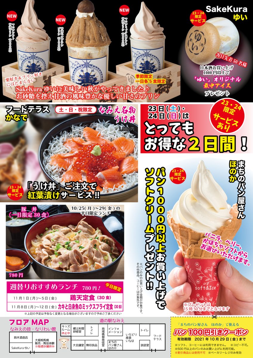 また今度の土日、「いなほ」「ほのか」「ゆい」では、1,000円以上のお買い上げでお得なサービスを提供!