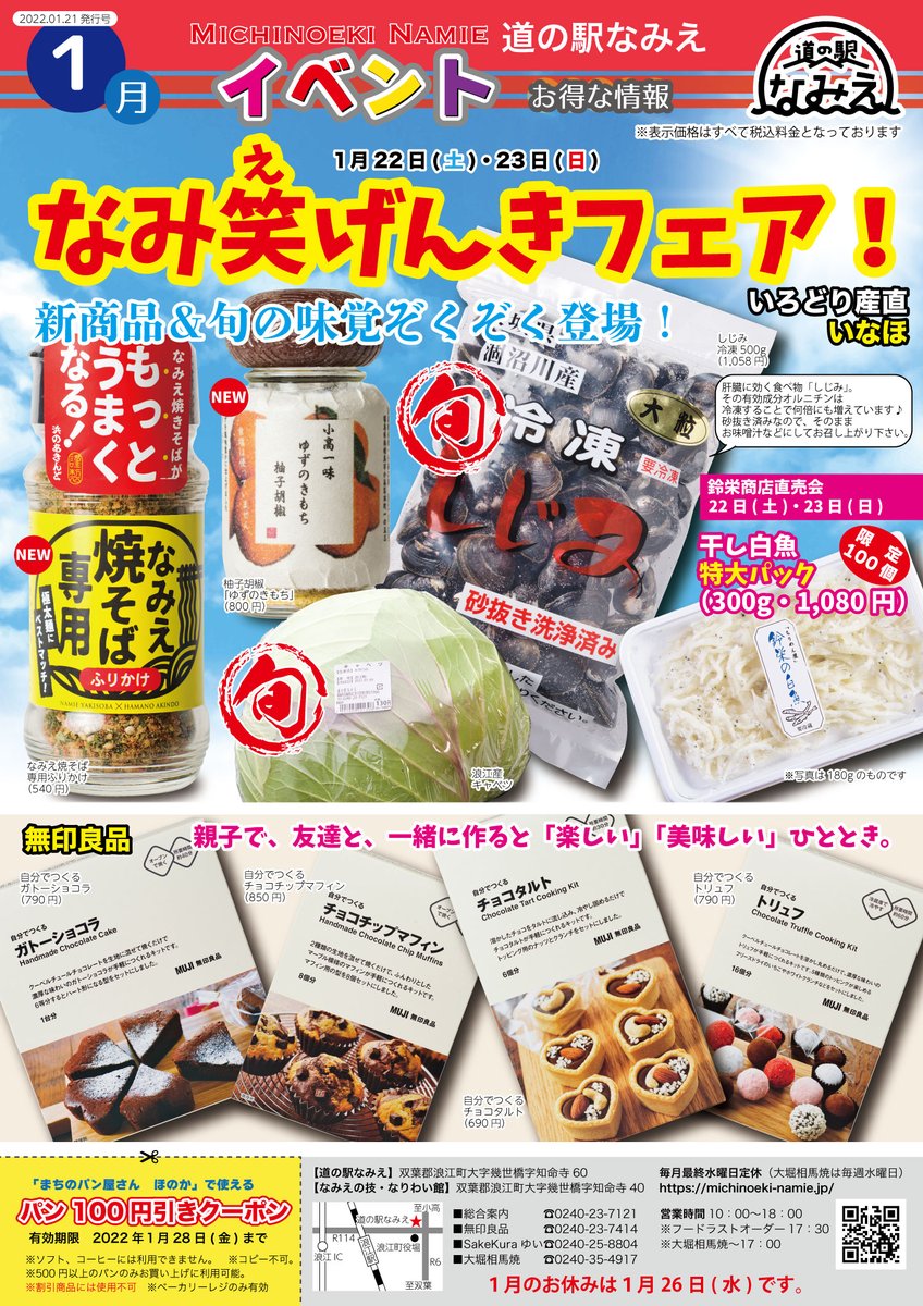 「なみえ焼そば」がもっと美味しくなる専用ふりかけや、肝臓に効く成分たっぷりのしじみ、浪江産キャベツなど、新商品や旬の味覚がたくさん♪