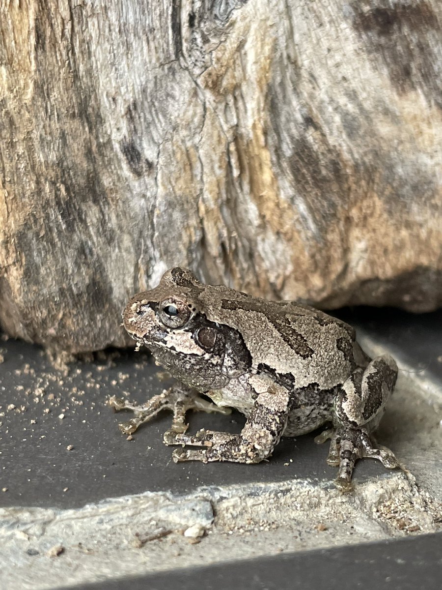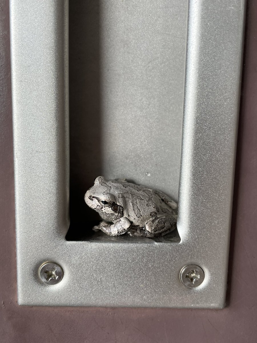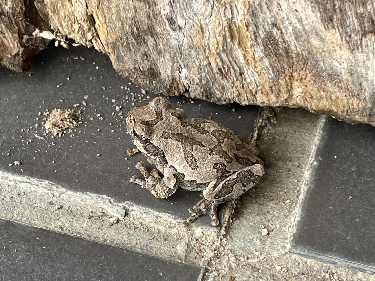 おはようございます。本日のカエルさんは木の横で佇んでおりました。今まで見かけていたシルバーよりもちょっと木に寄せた色でかな...