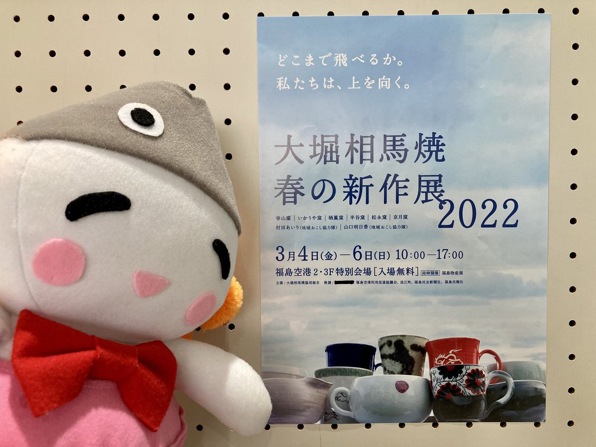 【 #うけどんさんぽ のお知らせ♪】みんな、おはよー☀️あしたから3日間、福島空港で開催する「 #大堀相馬焼 #春の新作展 2022...