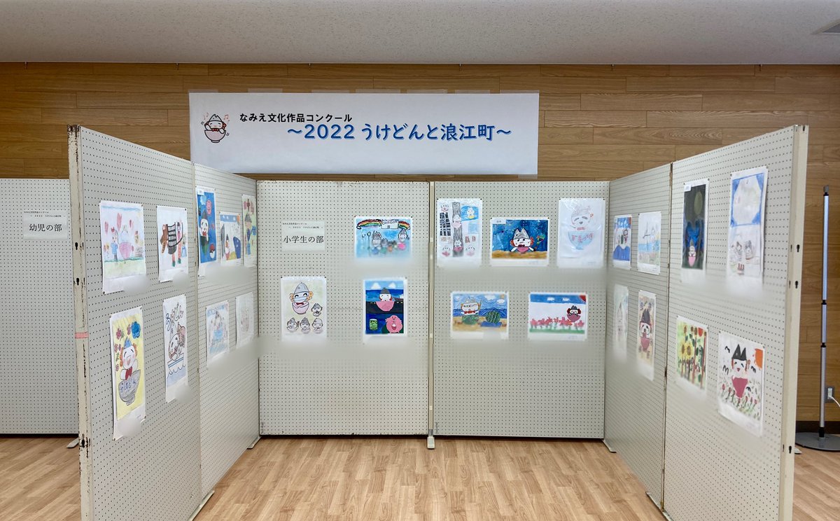 【うけどんの作品がいっぱ~い✨】ふれあい交流センターでね、なみえ文化作品コンクールの作品が展示されてるのっ!コンクールの...
