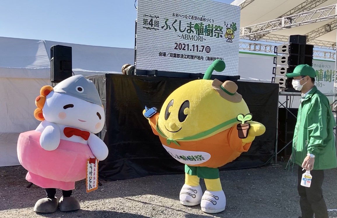#浪江町 #植樹 #うけどん #キビタン #ゆるキャラ