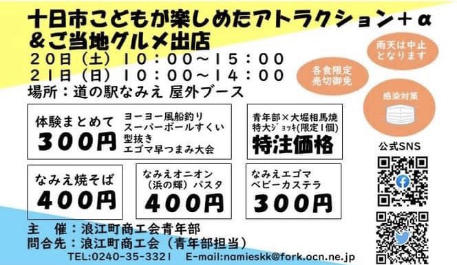道の駅なみえで子ども向けアトラクション&グルメブース、大堀相馬焼の販売👊✨