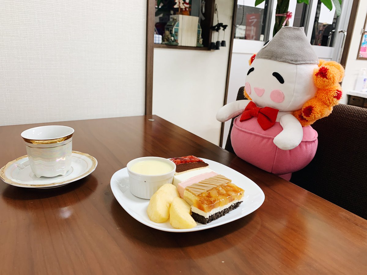 ケーキとミニプリンに飲み物がついているぜいたくなセットなんだぁ❄️