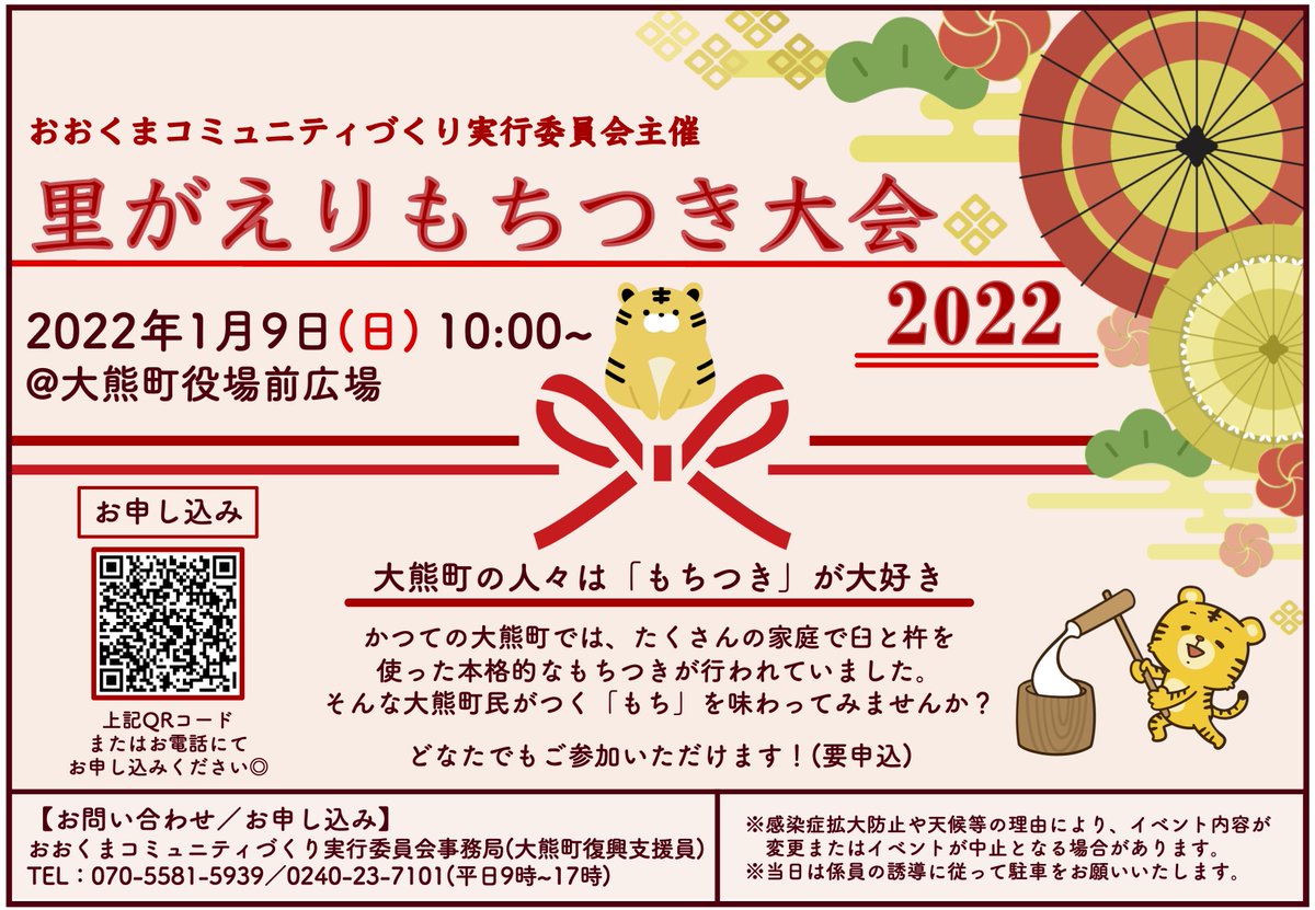 【もちつき大会開催のお知らせ!】おおくまコミュニティづくり実行委員会主催「里がえりもちつき大会2022」2022年1月9日(日) 10:0...