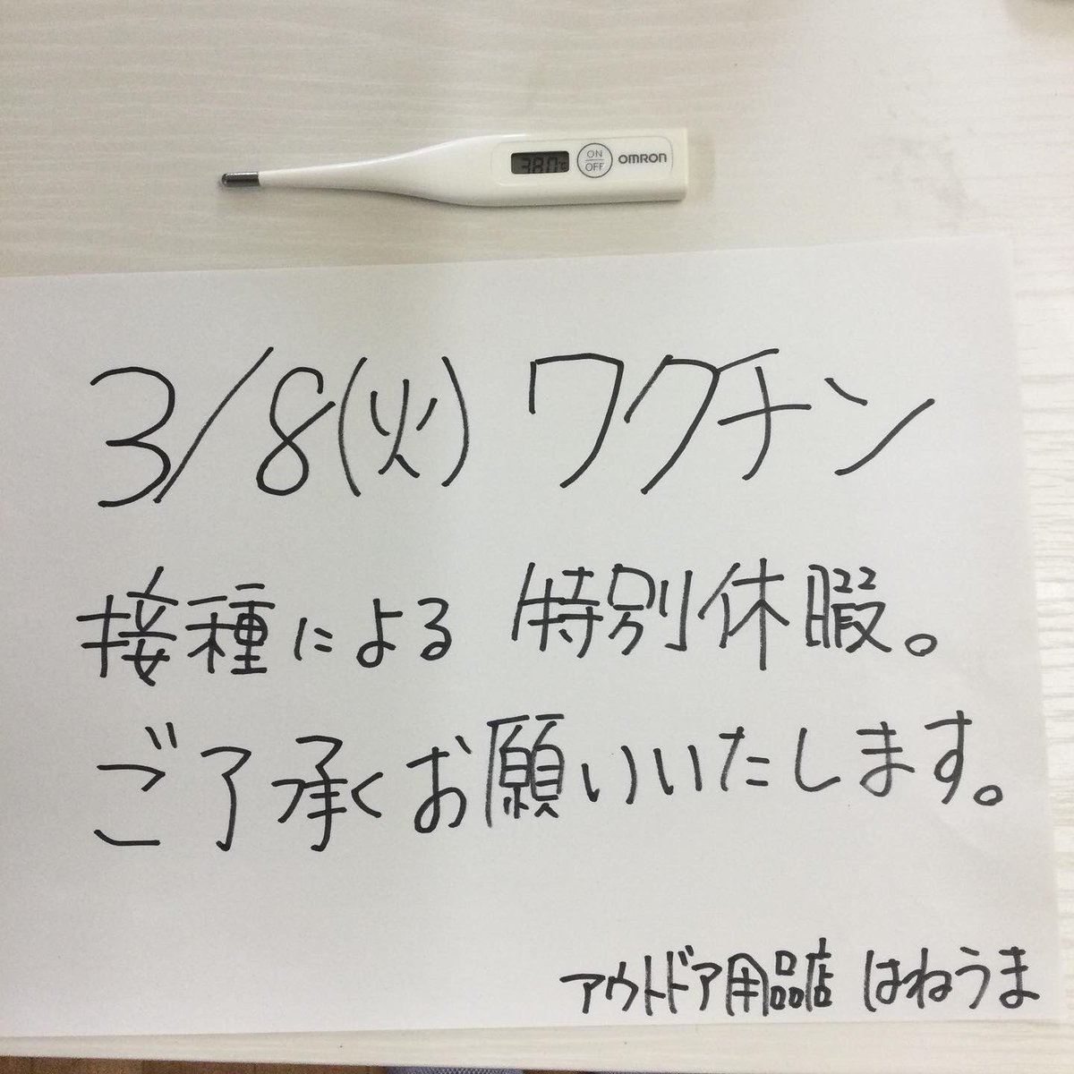急で大変申し訳ございませんが、本日3月8日(火)特別休業とさせていただきます。