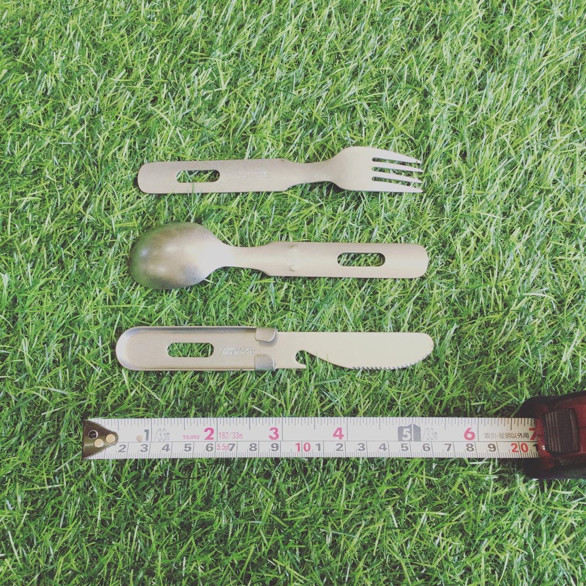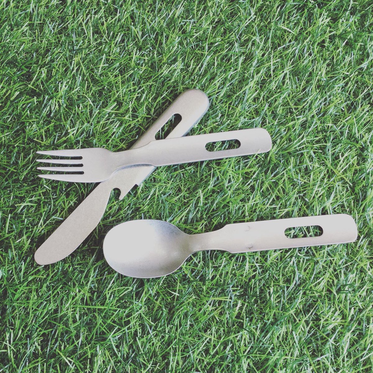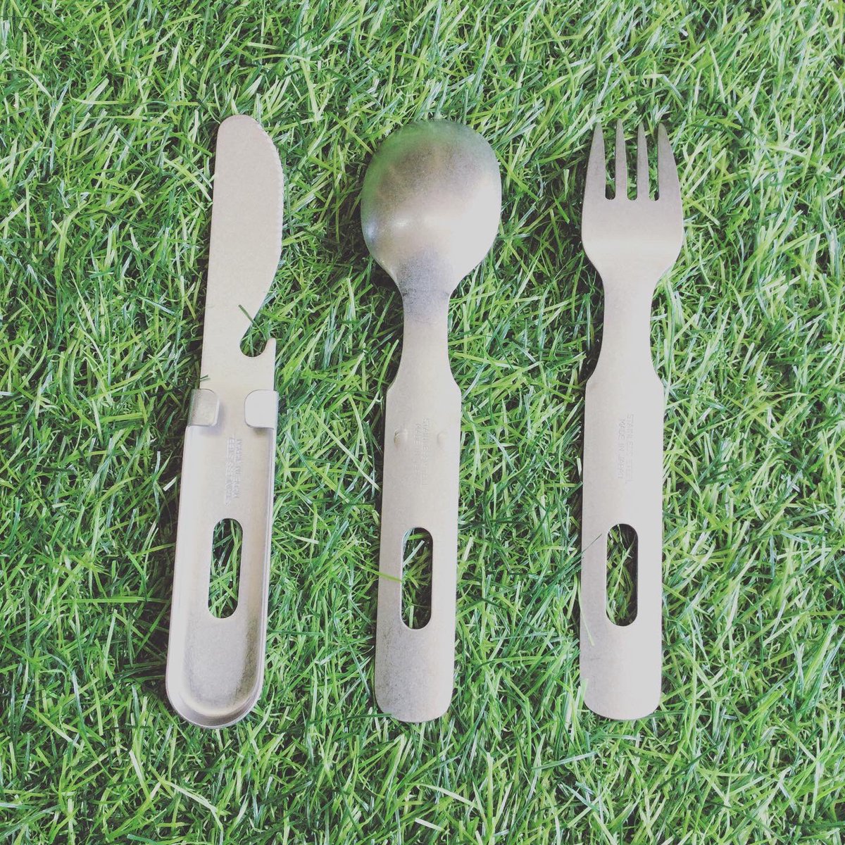 ナイフ・フォーク・スプーンの3点セットで、重ねる事でコンパクトに収納可能✨