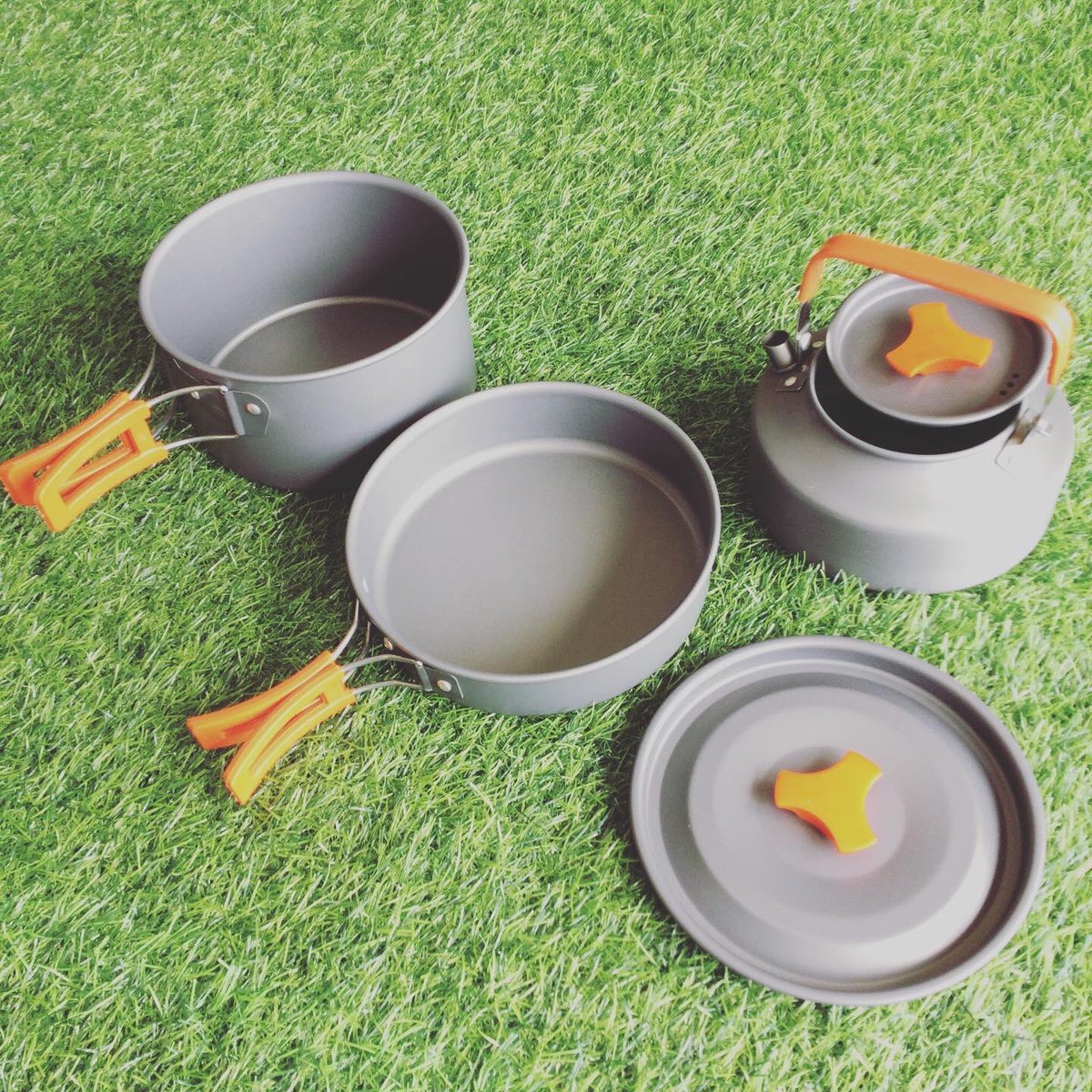 深さの異なるパンが2つとケトルに収納袋付きのセット✨
