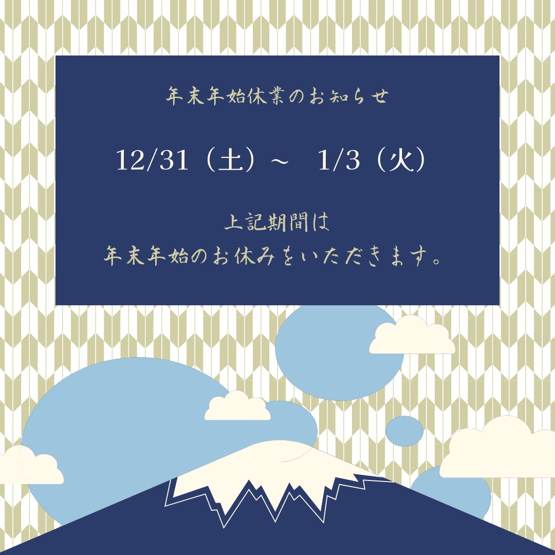 《年末年始休業のお知らせ》令和4年12月31日(土)~令和5年1月3日(火)まで年末年始休業とさせていただきますのでご了承お願いい...