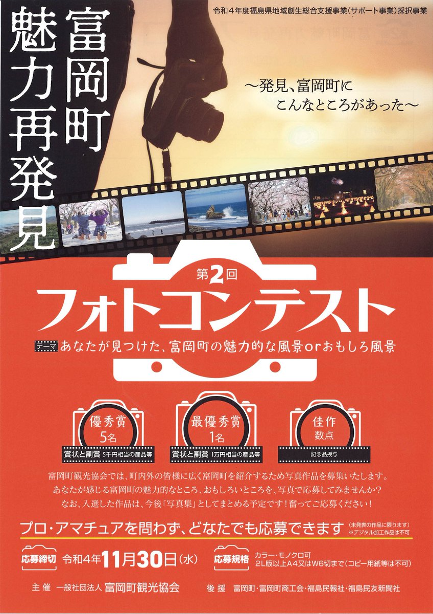 第2回 フォトコンテスト開催中!富岡町の魅力を多くの方に知って頂きたくフォトコンテストを開催しております。富岡町で撮影された...