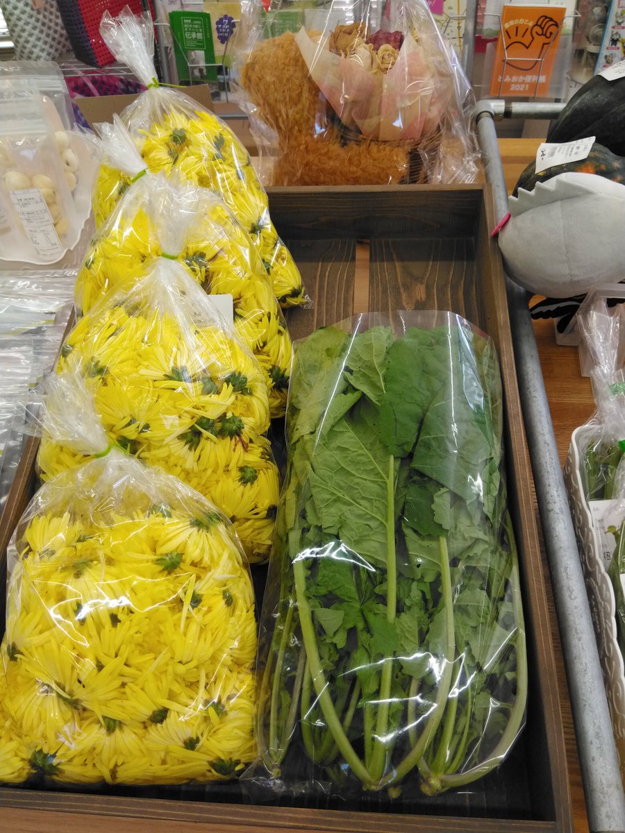 10/11(火)お知らせねぎ・食用菊が初入荷です。かぶ・いんげん・きゅうりが本日入りました。お越しをお待ちしております。