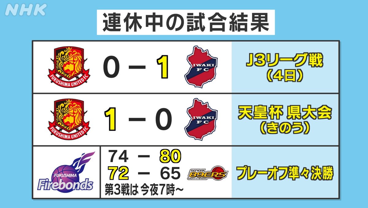 \どーも 月曜の中の人です/連休中はスポーツが熱かった 💪 #福島ユナイテッド と #いわきFC は2試合戦って1勝1敗! 両試合と...
