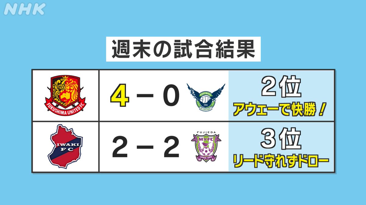 \月曜日はこちらの情報です 🏃 /【週末の試合結果】#福島ユナイテッド は快勝で2位浮上!#いわきFC は引き分けて3位となりました...