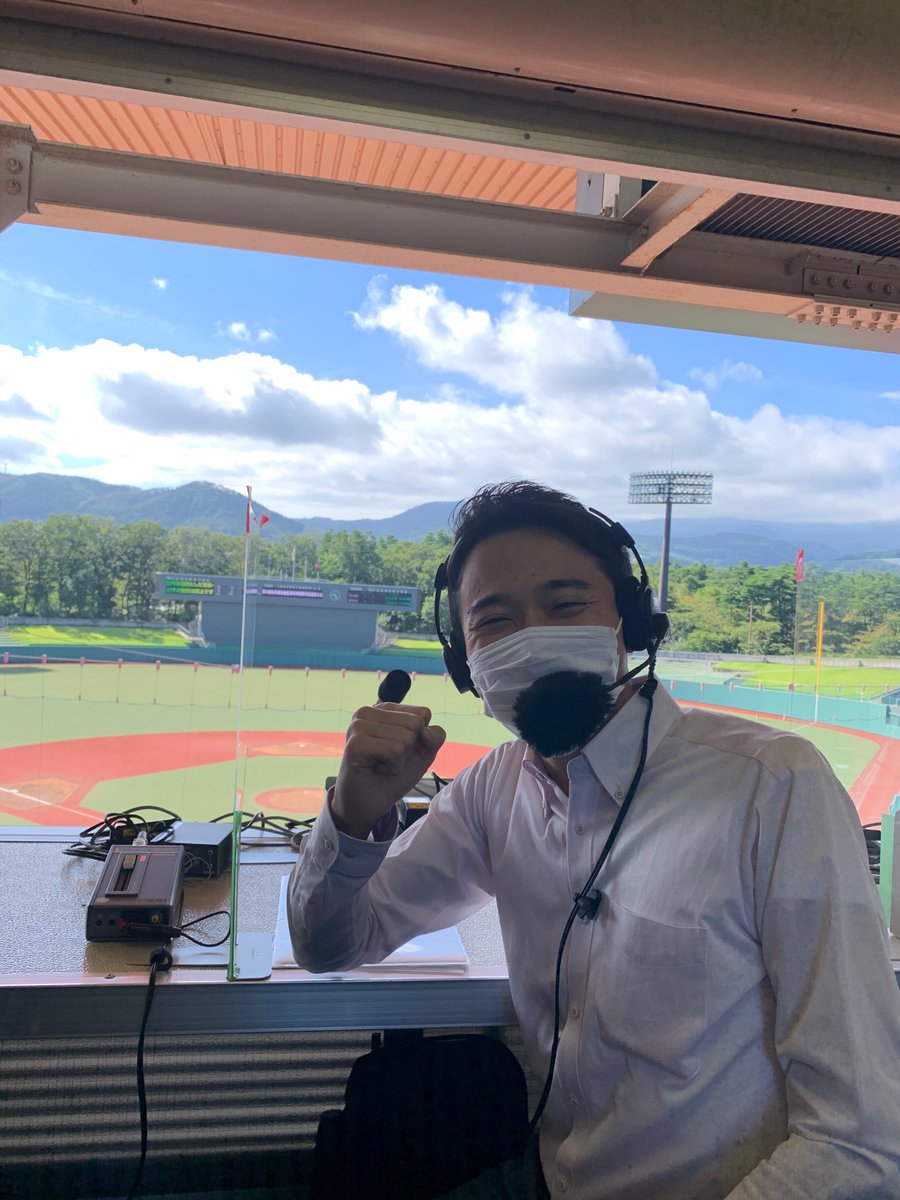 今日は第74回秋季東北地区高校野球・福島県大会の準決勝です。昨日は雨で順延となりましたが、今日は気持ちの良い晴れの天気です。準決勝の第一試合は、平工業 対 聖光学院 実況は武田アナ。気合十分です。