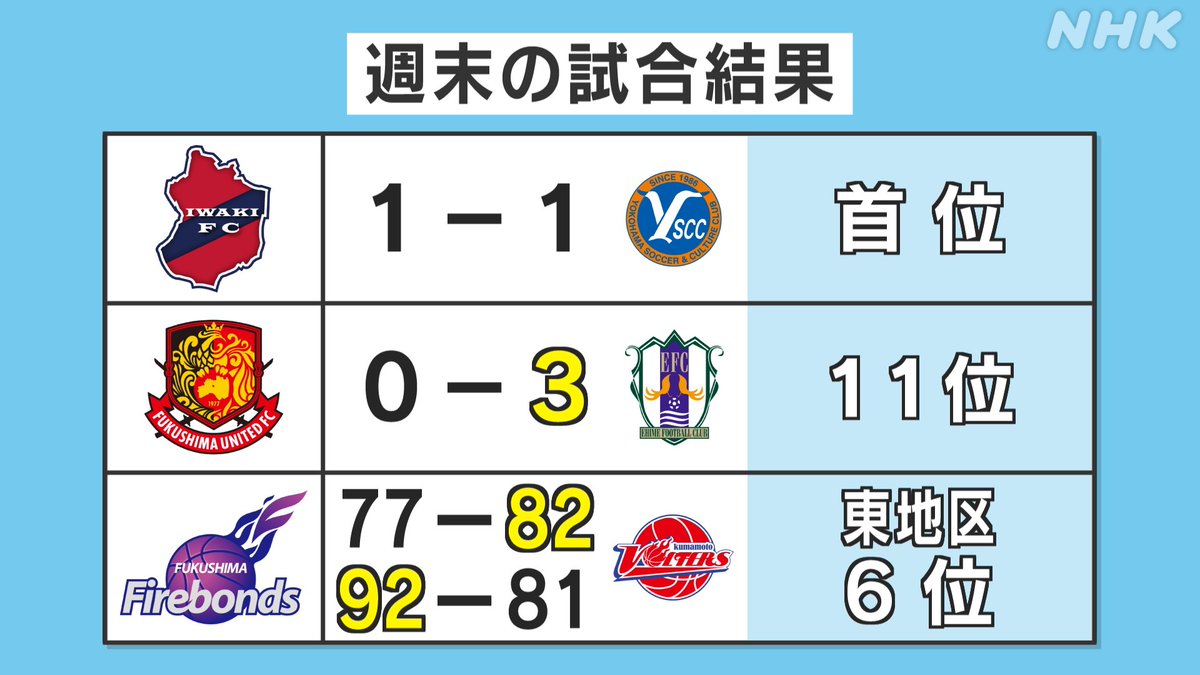 \月曜日はスポーツ情報をお届け/ 【#週末の試合結果】#いわきFC は横浜と対戦🔥 先制点を決めますが追いつかれて1対1で引き分け ...