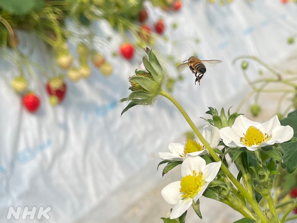 \🍓🍓🍓🍓🍓🍓🍓🍓🍓🍓/いちごの栽培が盛んな #鏡石町 。こちらのハウスでは出荷のピークを迎えています。甘い香りに誘われてミツバチ...
