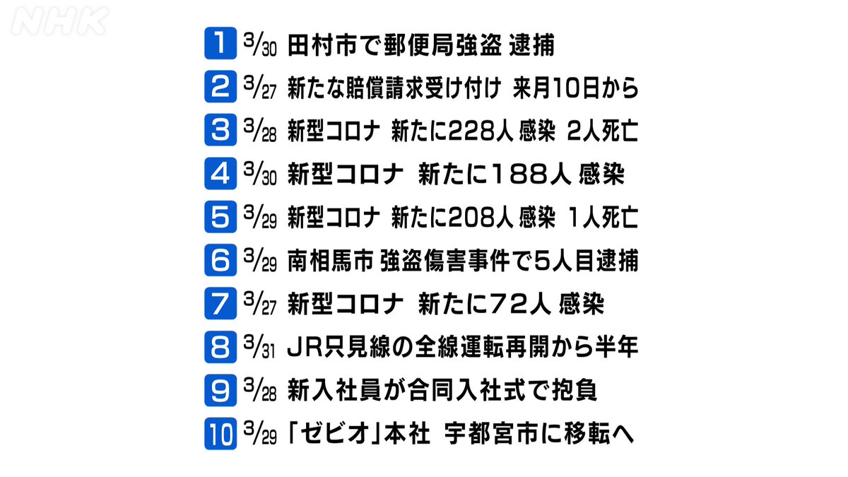 ◤ ̄ ̄ ̄ ̄ ̄ ̄ ̄ ̄ ̄ ̄ #福島NEWSWEB アクセスランキング__________◢先週月曜日から1週間のアクセスランキング...