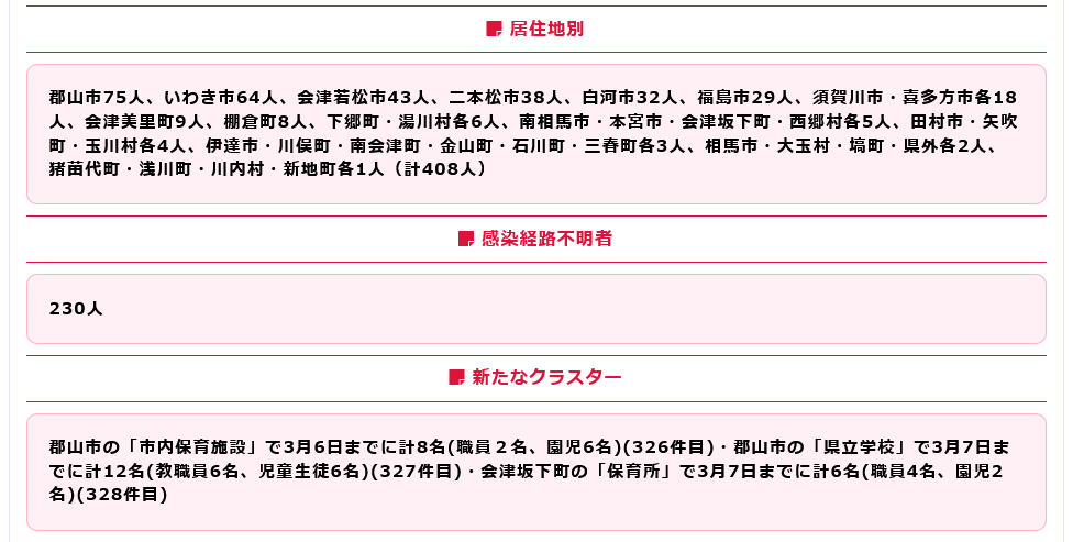 新たな新型コロナ陽性患者は408人となりました。内訳は、郡山市75人、いわき市64人、会津若松市43人、二本松市38人、白河市32人、福島...