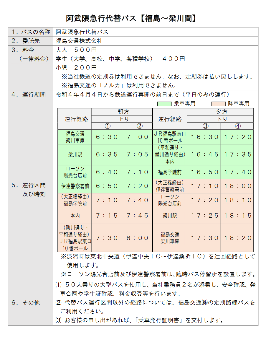 地震の影響で全線で運休中の阿武隈急行では、4月4日から、福島-梁川駅間で代替バスを運行します。