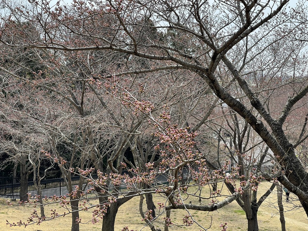 #ふくしま桜紀行 今日最初の訪問場所は広野町二つ沼総合公園です。公園の標本木としている桜の木が開花、桜の季節が始まりました。公園内には300本以上の桜が植えられており、これから桜が満開を迎えると桜のトンネルの下でパークゴルフを楽しむこともできるそうです。