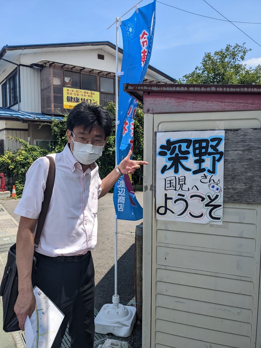 深野です。今日(29日)は国見から行ってみっカー中継。こんな張り紙で歓迎されました。嬉しい😄