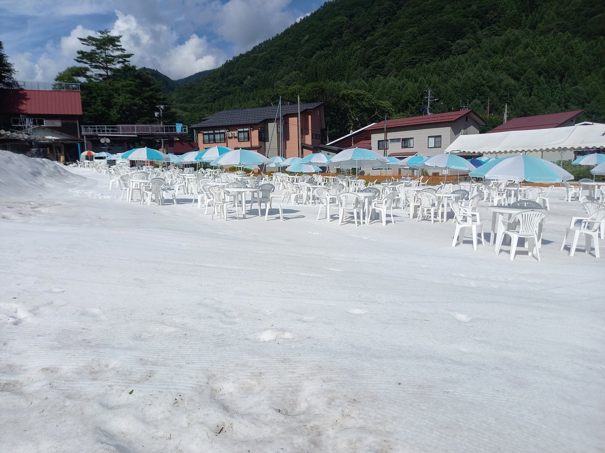 #サンキン 出張公開生放送@檜枝岐村 真夏の雪まつり会場✨(放送は、手前のブースで📻️)このあと10時~ON AIR😍快晴🌞 #ラジオ福島 #檜...