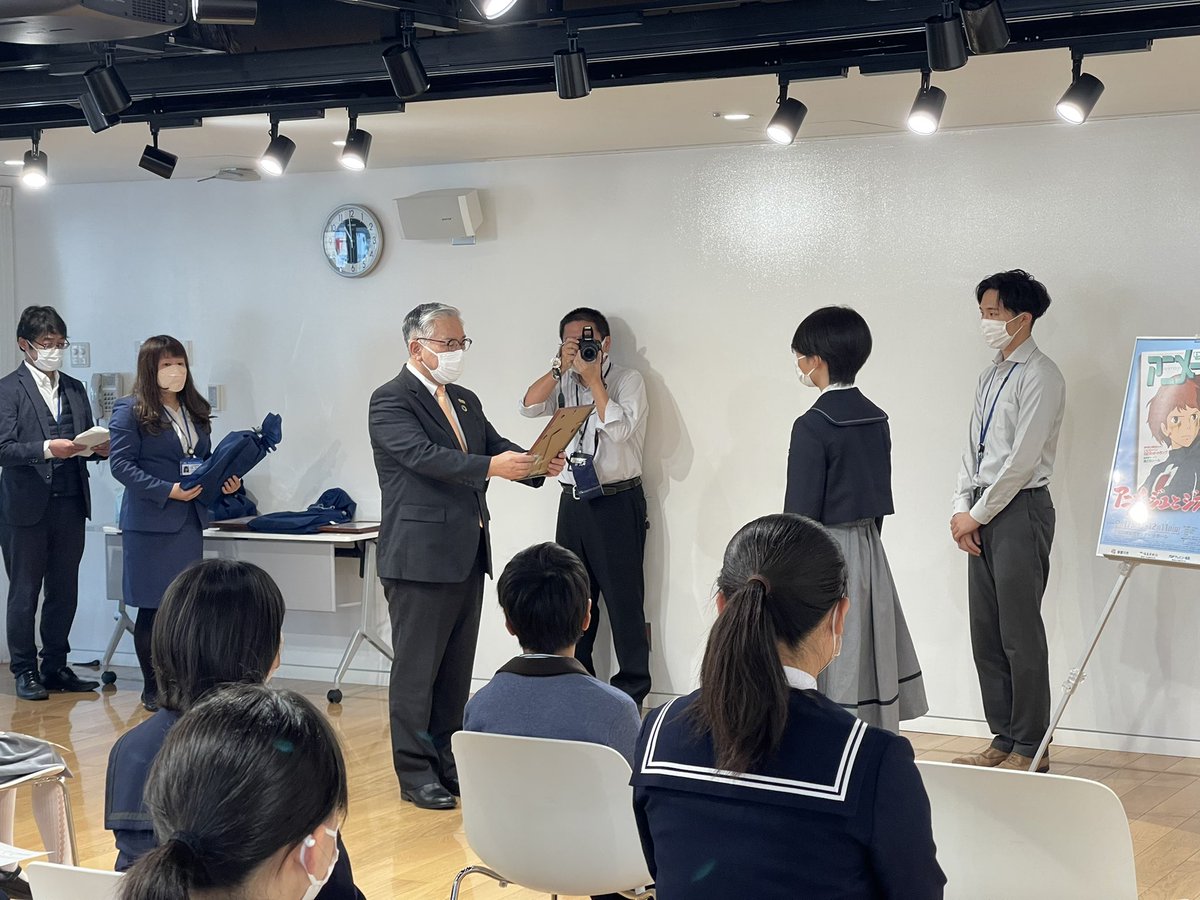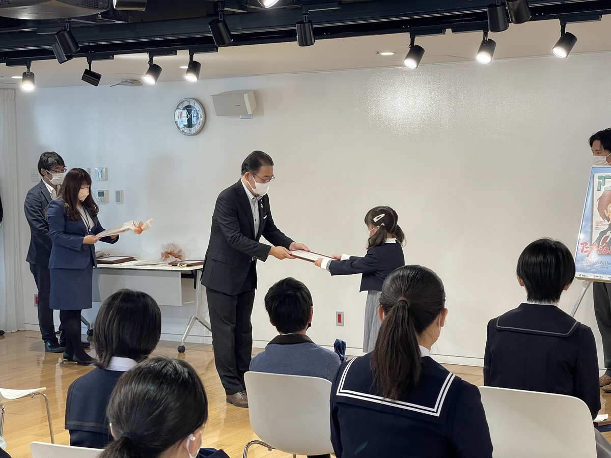 須賀川市内の児童、生徒から寄せられたジブリ作品をテーマとした絵画展「すかがわ みんなの美術館」が今日まで須賀川市tetteで行われています。現在開催中の「アニメージュとジブリ展」の連動企画として行われたもので、今日、表彰式が行われ入賞者15人に賞状、記念品が贈呈されました。
