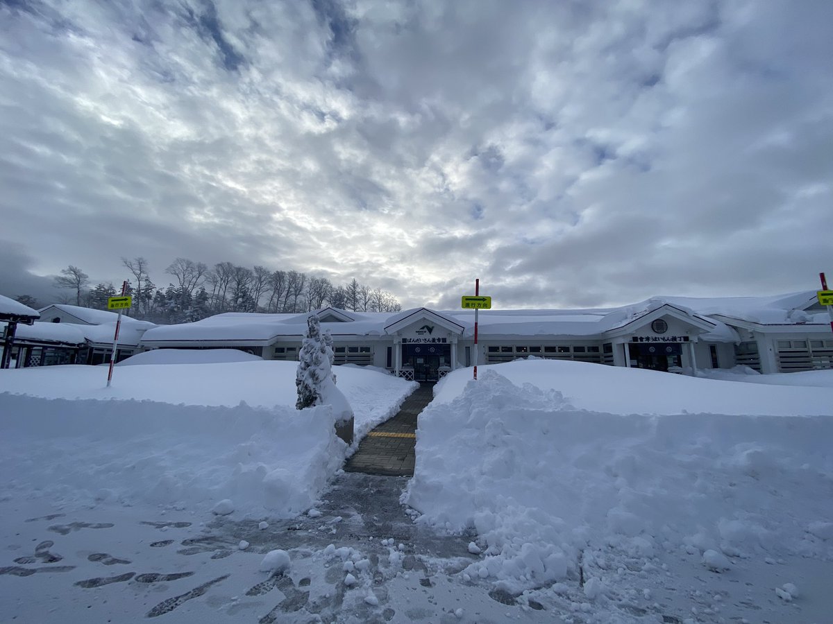 【行ってみっカー情報】磐越自動車道 磐梯山SA(下り)です。雪がこんもり積もっています。店舗までの小径はきれいに雪かきしてあり...