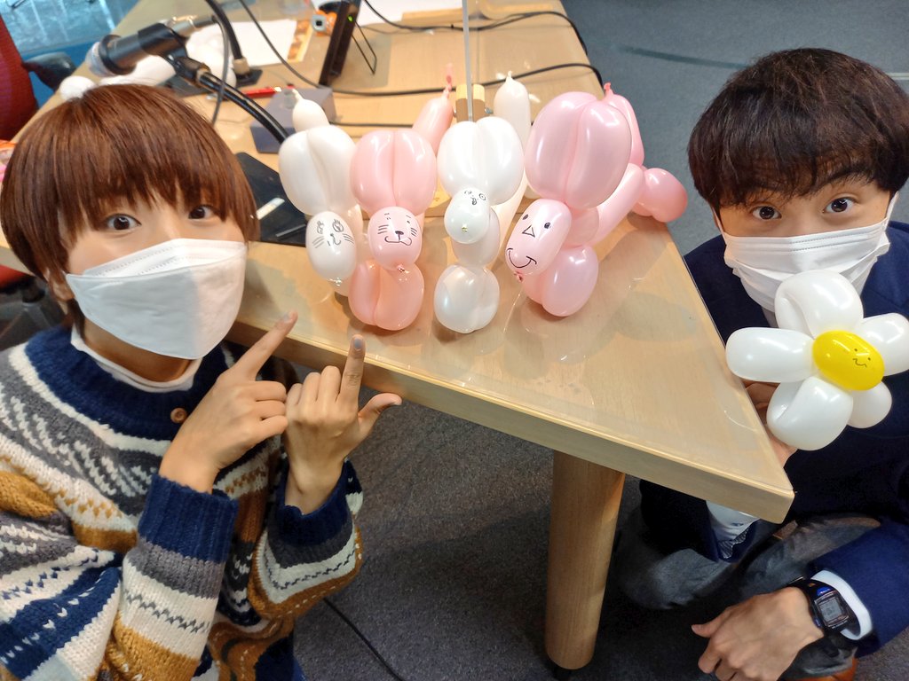 Radio de Showもりマナ✨今日は #バルーンアート にチャレンジ🎈(とはいえ、作ったのはMANAMIちゃんで、森本アナとディレクターは顔を...