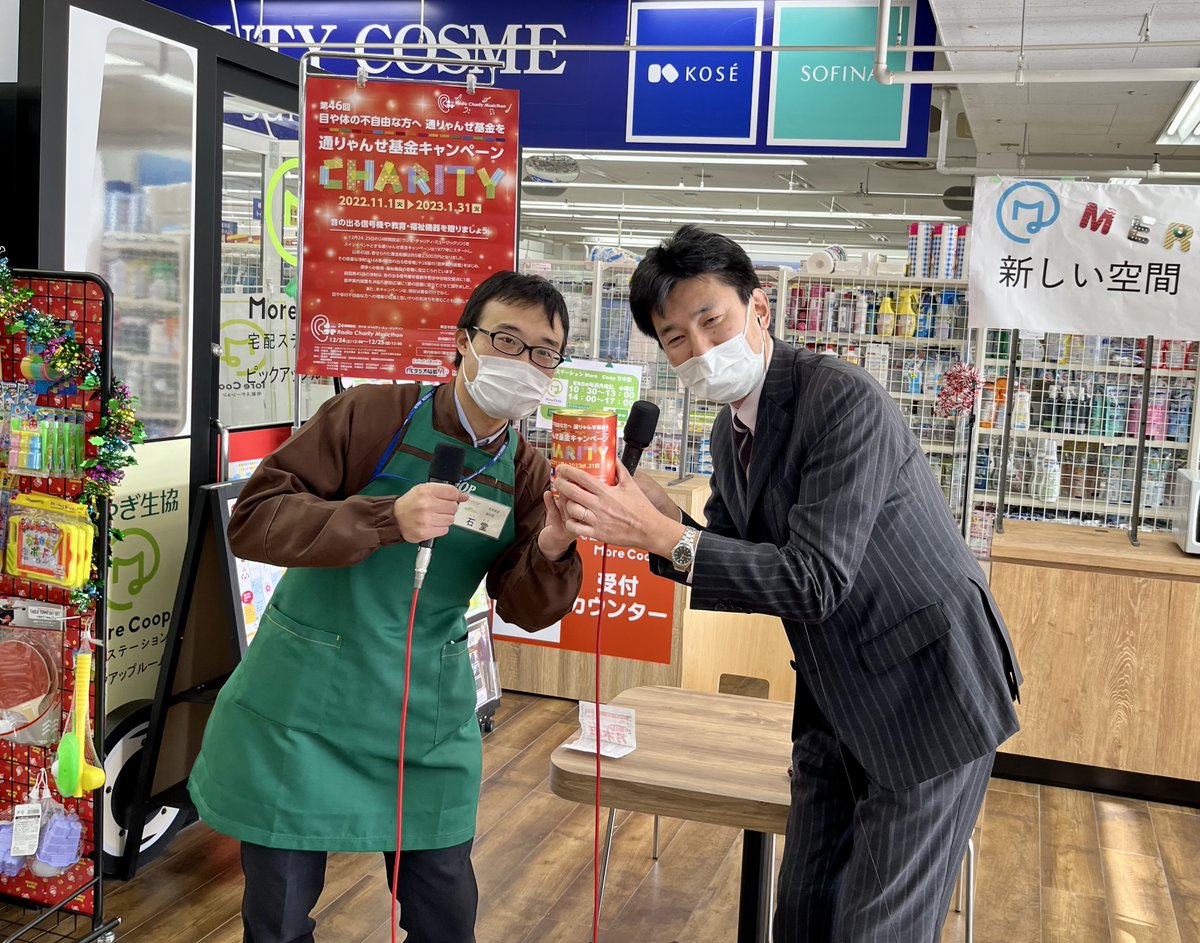 愛の泉中継は、コープふくしま方木田店から。石堂副店長と深野健司アナウンサー。店頭に募金箱を設置して頂き、ご協力頂いておりま...