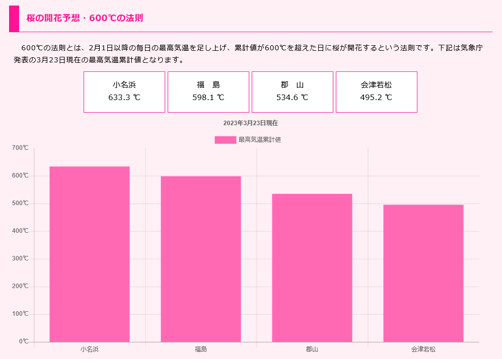 福島地方気象台は3月24日、福島市信夫山公園の敷地内にあるソメイヨシノ🌸の標本木を観測し、開花を宣言、昨年より11日早く、平年より14日早い開花となり、これは1953年の観測以来、最速の開花となりました。