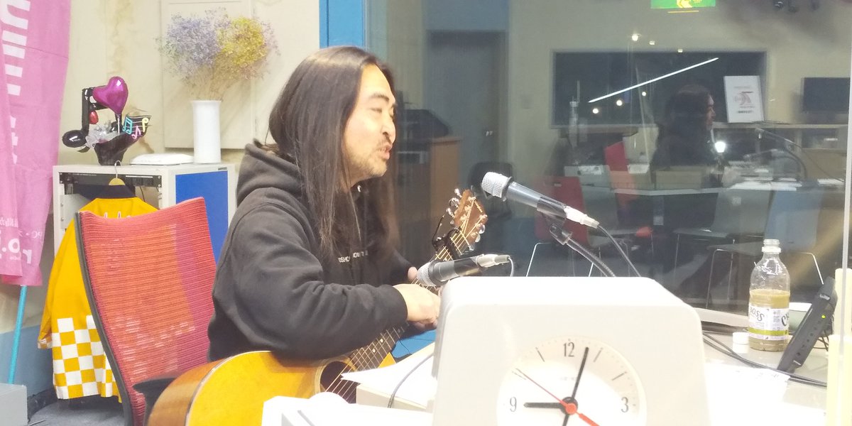 #竹原ピストルとaveのラジオ番組、生放送スタート!撮影に備えた山田孝之さんのようなaveの画像。メッセージはpanda @rfc.jpへ。 #パンダラジオ #竹原ピストル #ave福島の歌唄い