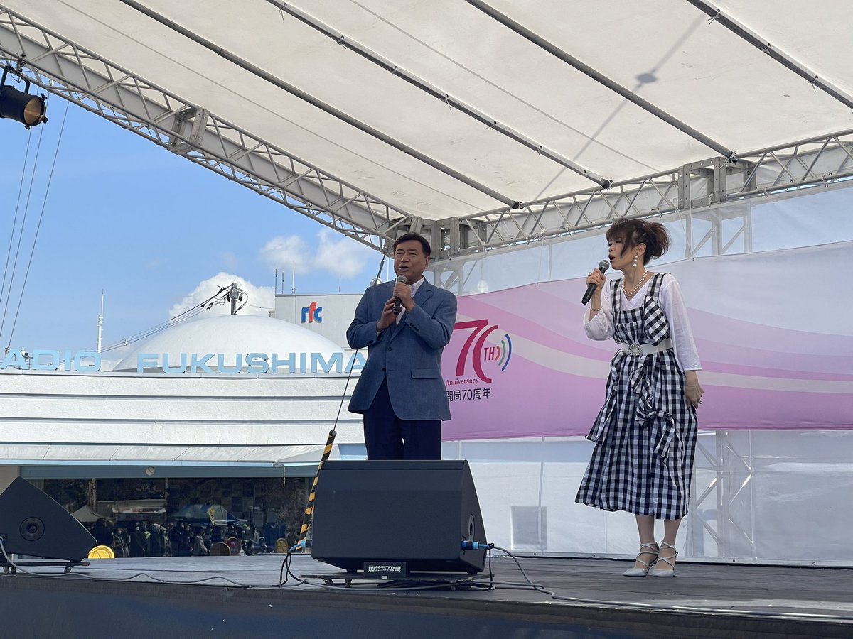 rfc桜まつり、ちょっと覗き見。今は「夢 石田社長と有里」のステージです。デビュー曲「夢と・・・未来へ」を披露してくれました。いつものあの掛け合いも飛び出して、大盛り上がり。