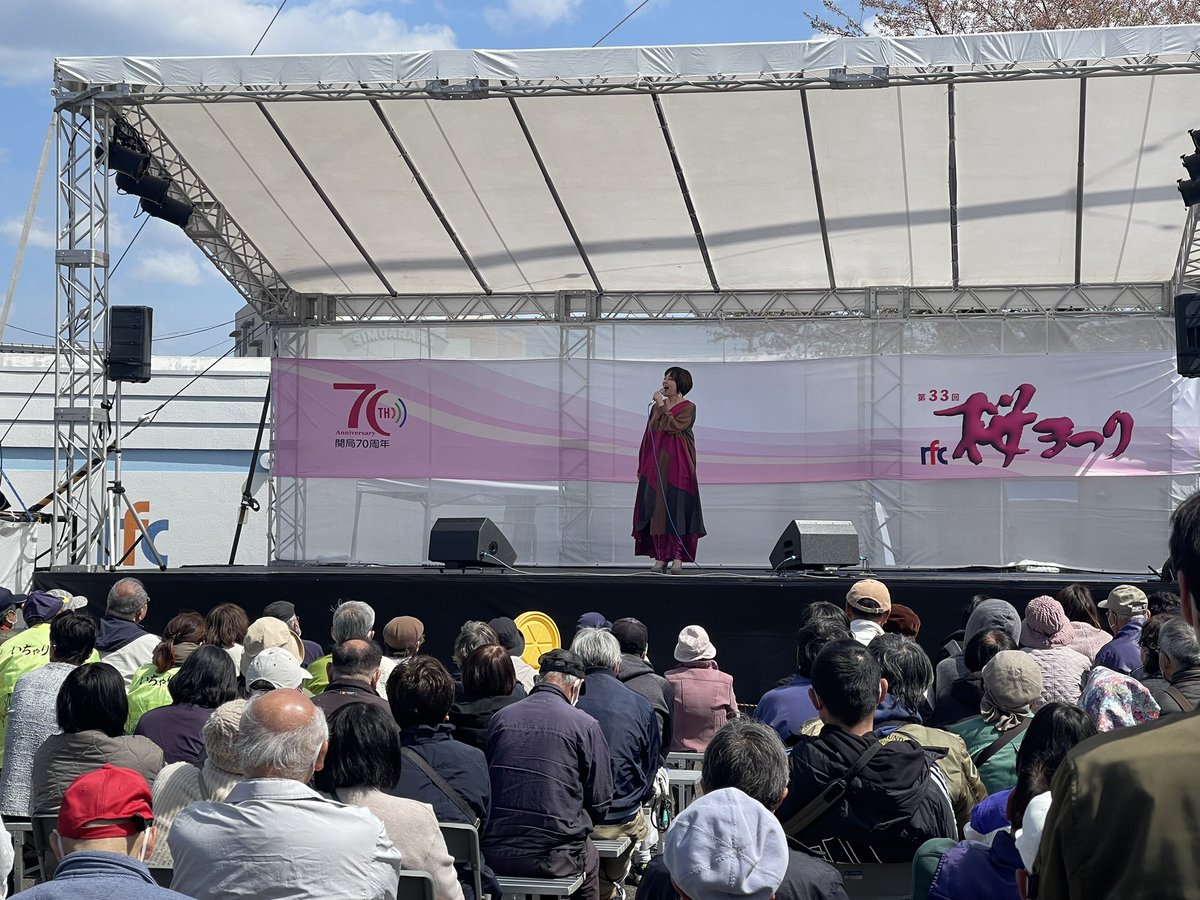 午後1時からは普天間かおりさんのステージです。rfc桜まつりの出演は4年ぶり。久しぶりの生歌披露に多くの方が拍手をくっています。#r...