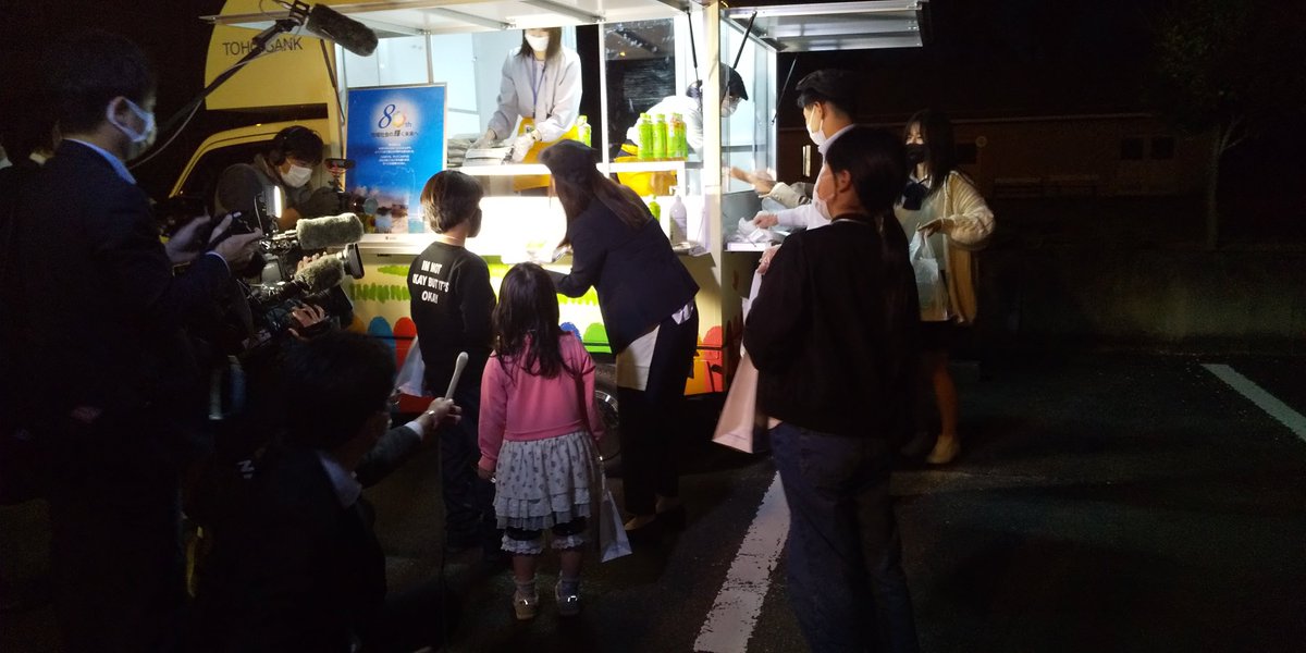 福島市の吉井田学習センターから中継でお伝えしたTOHOキッズcafeキャラバン、子供達にお弁当が配られました!