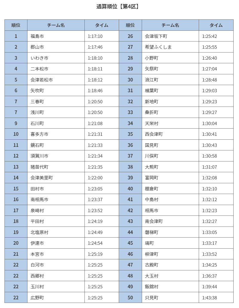 第33回ふくしま駅伝第4区通算順位https://t.co/R7XoN9WKVj#ふくしま駅伝 #ラジオ福島
