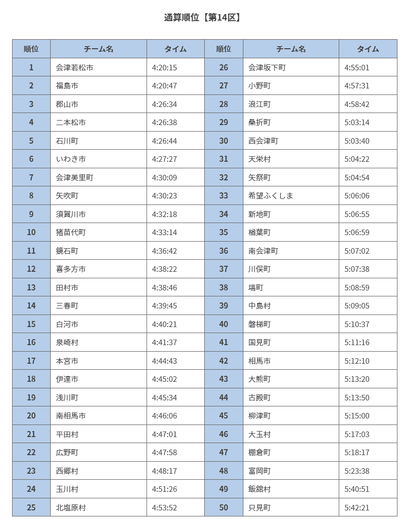 第33回ふくしま駅伝第14区通算順位https://t.co/R7XoN9WKVj#ふくしま駅伝 #ラジオ福島