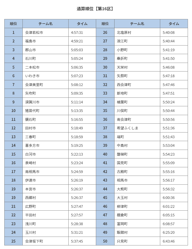 第33回ふくしま駅伝第16区通算順位【最終】https://t.co/R7XoN9WKVj#ふくしま駅伝 #ラジオ福島