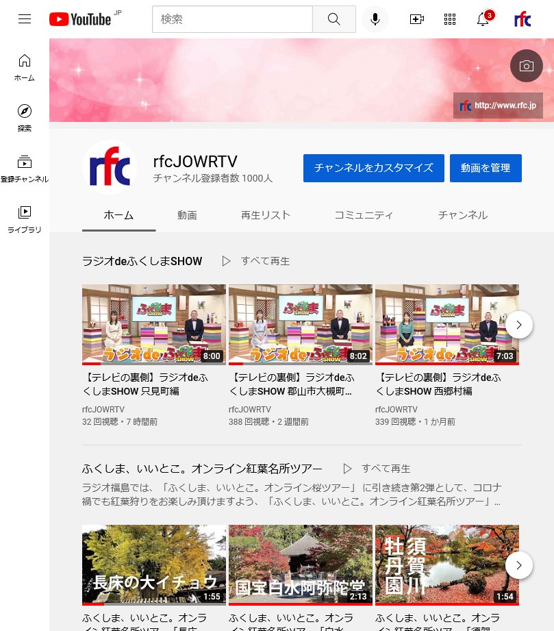 ラジオ福島公式YouTubeチャンネル登録者数がようやく1,000人となりました。ありがとうございます。2023年の開局70周年に向けて、YouTubeでも様々な企画を展開してまいりますので、よろしくお願いいたします。