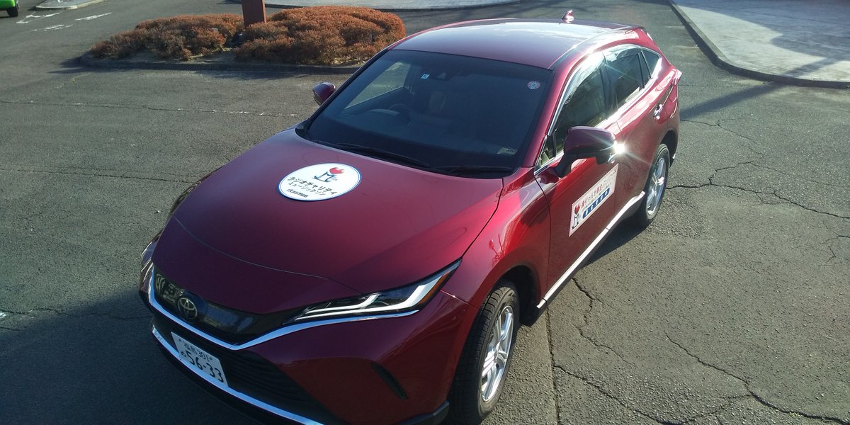 ラジオ・チャリティー・ミュージックソン、スタート!ネッツトヨタ福島からの協賛車輌はクリスマスカラーのハリアー。フォーマルさと...
