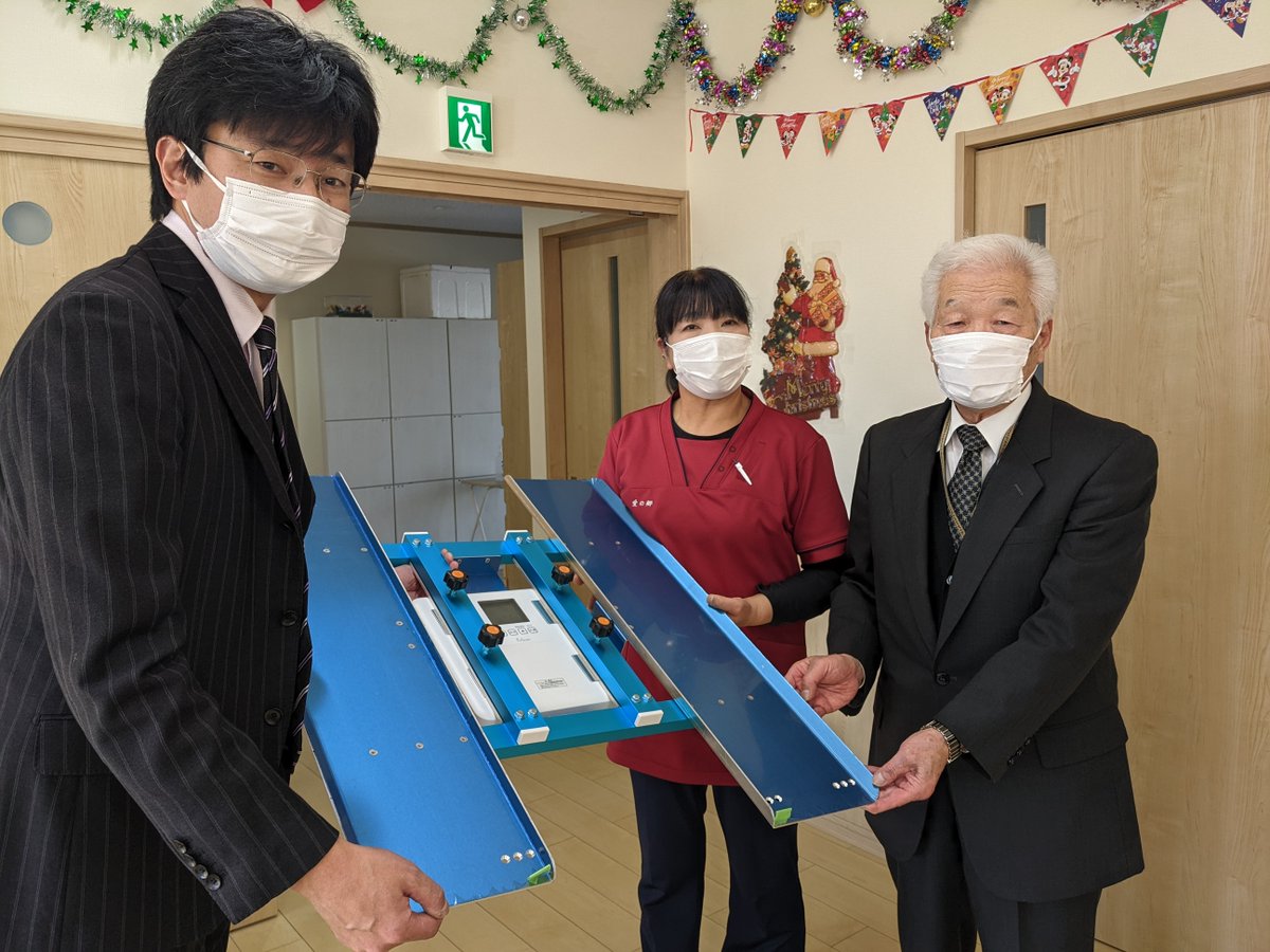 【通りゃんせ基金・寄贈品贈呈】先月23日、石川町の特定非営利活動法人Tomo 多機能型事業所「愛の郷」を訪問し、皆様の募金で購入した車いす体重計を寄贈いたしました。橋本裕美子さんに贈呈しました。番組でのご報告は今月9日午後4時25分からです。