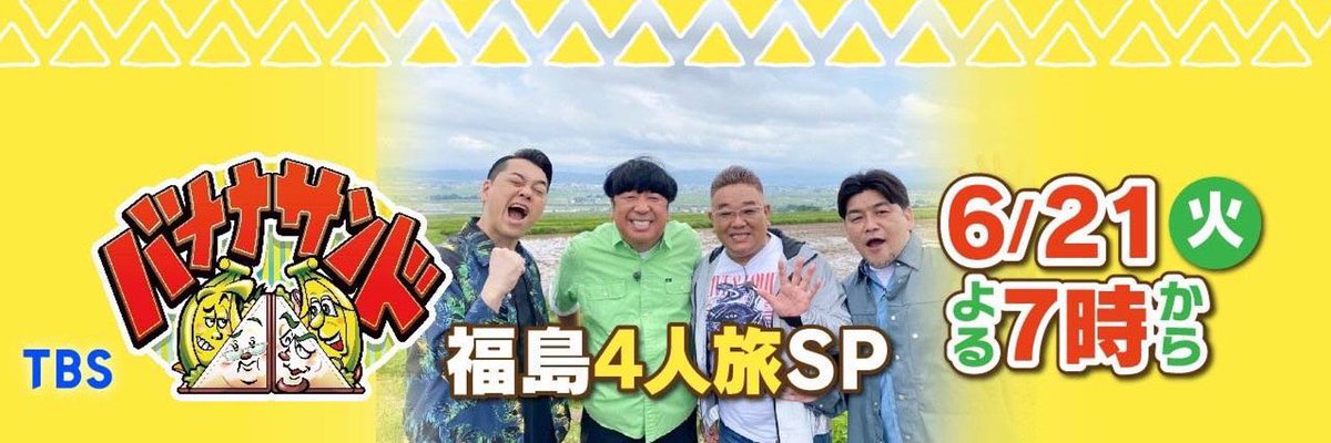 #バナナサンド 公式のヘッダーが!4人とも最高の表情😆😁🤗😄すでに爆上がりです✨サンド伊達が本気で考えた!福島ツアー\\21日(火...