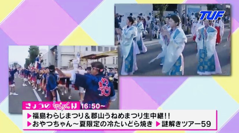 今日の #ちゃん6 は夏だ!祭りだ!!#わらじまつり #うねめまつり 生中継✨福島市のまちなか広場で開催中の#メロンパン号キャラバ...