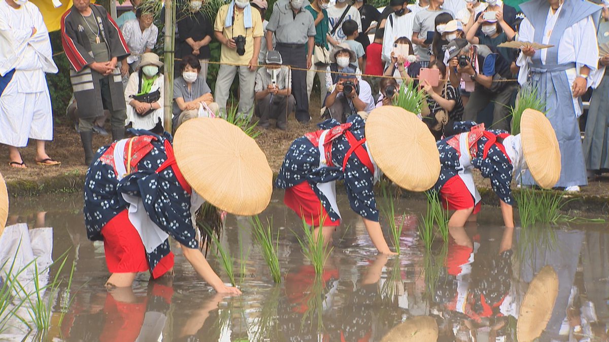 祭りには欠かせない早乙女役の女子生徒5人は、新型コロナの影響で様々な伝統行事が中止になるなか参加できることに喜びを感じてい...