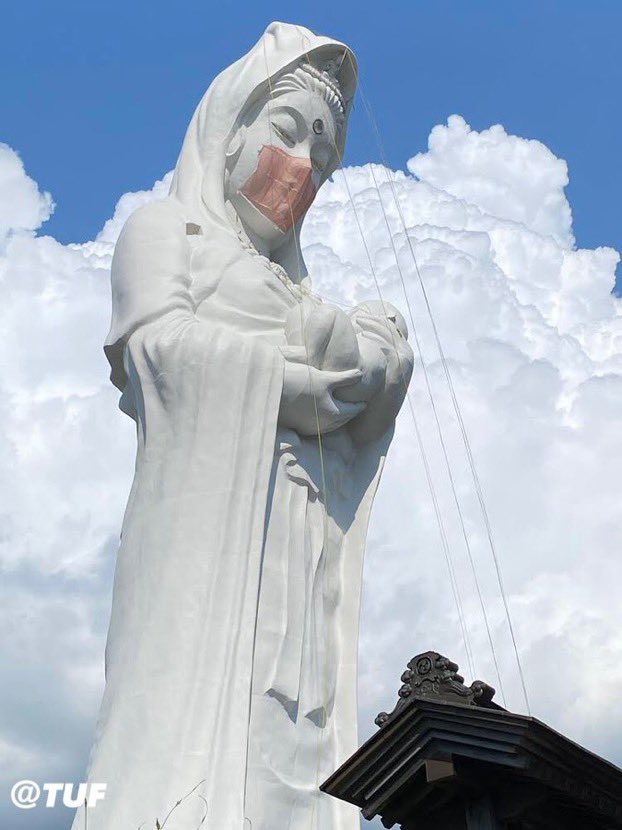 福島県の巨大観音さまきました!写真は去年、#ゴゴスマ で観音様にマスク装着する様子をお伝えした時の写真#冒険少年 放送中