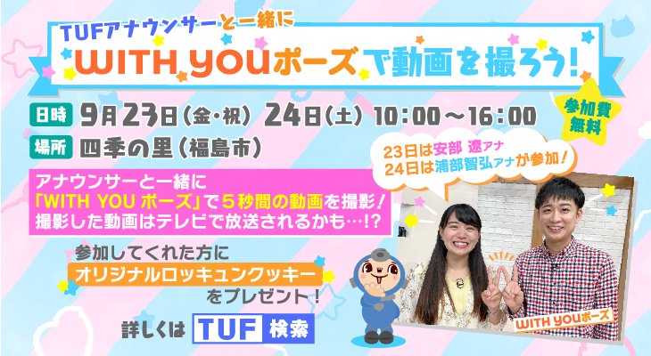 【TUFアナウンサーと一緒に #WITHYOUポーズ で動画を撮ろう✌️✌️】9月23日(金・祝)と24日(土)福島市の四季の里で撮影会を開催し...