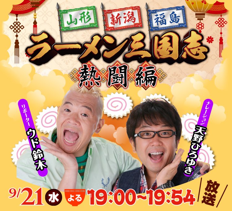 21日(水)よる7時からは!山形・新潟・福島ラーメン三国志 熱闘編🔥福島の超人気店個性派ラーメン山形には新たなご当地ラーメン...