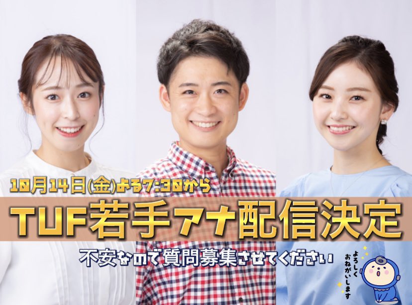 /ひさびさに配信!…でも若手アナ3人で…大丈夫⁈\今週金曜14日よる7:30からTUF公式YouTubeチャンネル配信決定!!10月から #な...