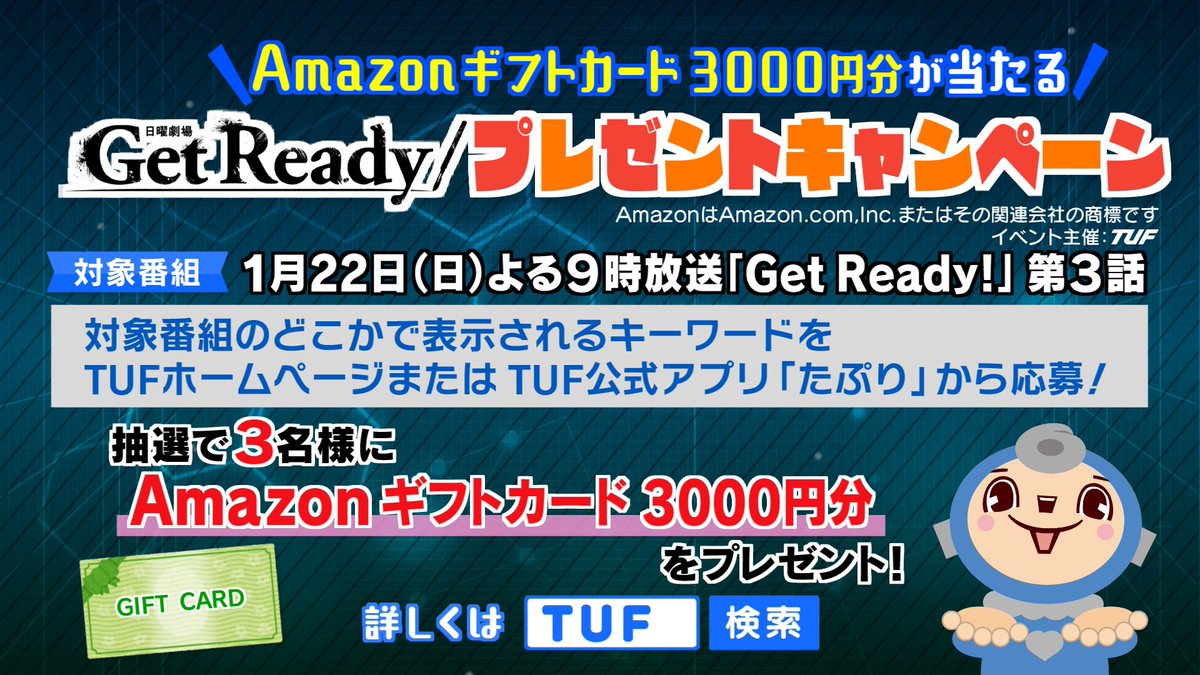 / CM放送中!📺#ゲットレディ プレゼントキャンペーン🎁\1月22日(日)よる9時〜のGet Readyのどこかでキーワードが表示されます.....